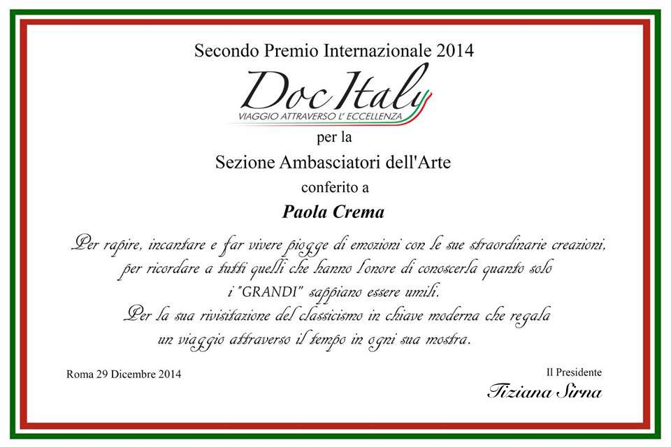 Progetto “Doc Italy- Viaggio Attraverso l’Eccellenza” nato da un’idea di Tiziana Sirna grazie al sodalizio con due artisti di fama Mondiale, la scultrice e orafa Paola Crema e il designer, scultore e orafo Roberto Fallani e alla collaborazione di 2 importanti studi di grafica e servizi per il Web, Gianni Rossi Graphic. Per la prima volta l’arte scende in campo con un contributo tangibile al comparto Italiano più’ importante e di tendenza, il “Made in Italy”, comparto però quello dell’agroalimentare ostacolato da leggi e burocrazia invece che esser supportato e promosso dallo Stato e da chi lo rappresenta. Un’altro modo di vedere la comunicazione e l’immagine del Food&Beverage, ogni prodotto d’Eccellenza “OPERA D’ARTE” della ns Italia, avrà come etichette una creazione dei due straordinari artisti. “Art for Food” a cura di Roberto Fallani.