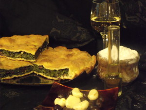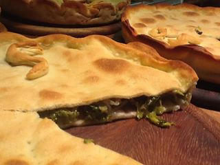 Tiella di scarola: – 500 gr di farina – 500 gr di scarola – 100 gr di olive nere snocciolate – 50 gr di capperi – olio, prezzemolo, sale, peperoncino forte